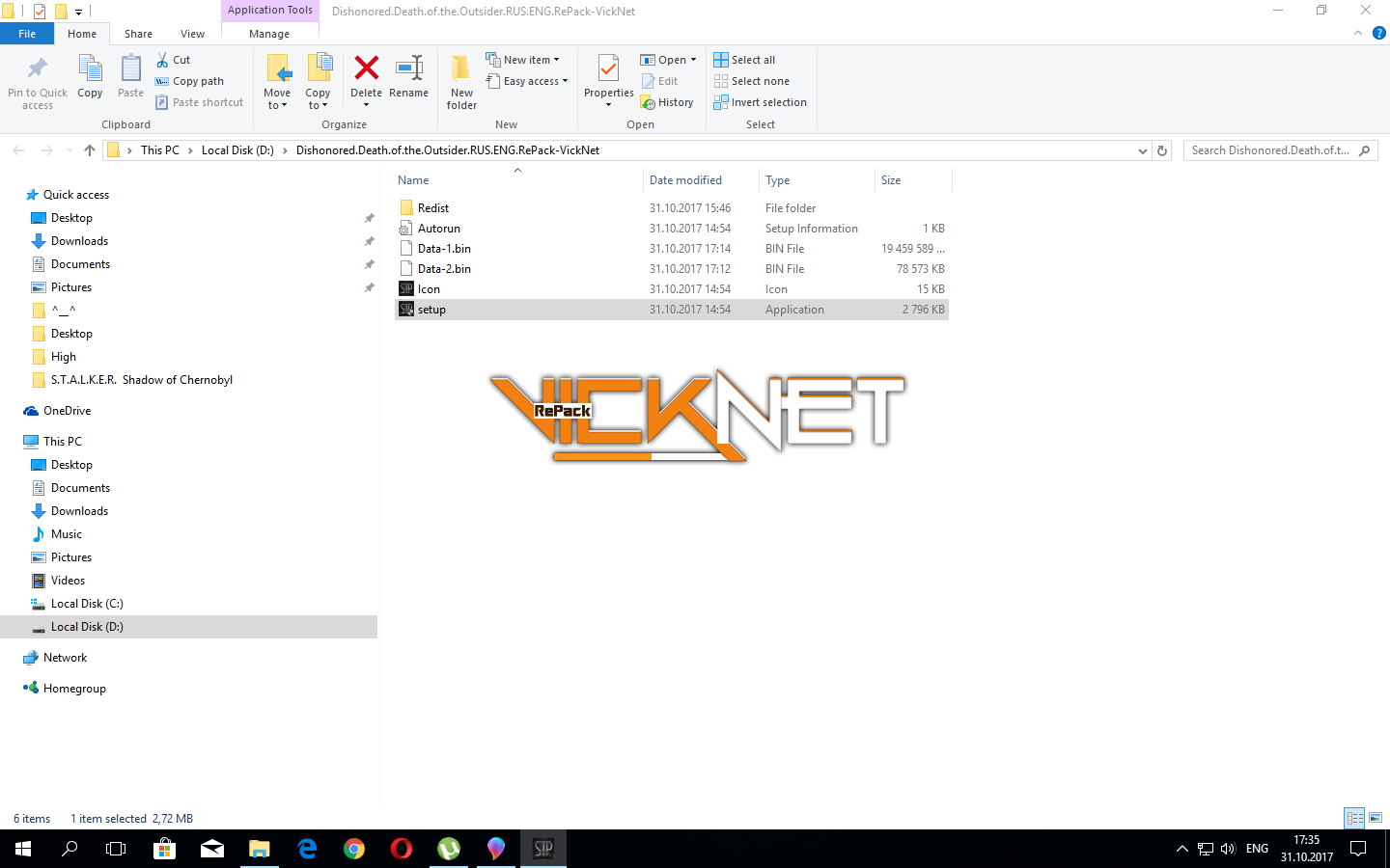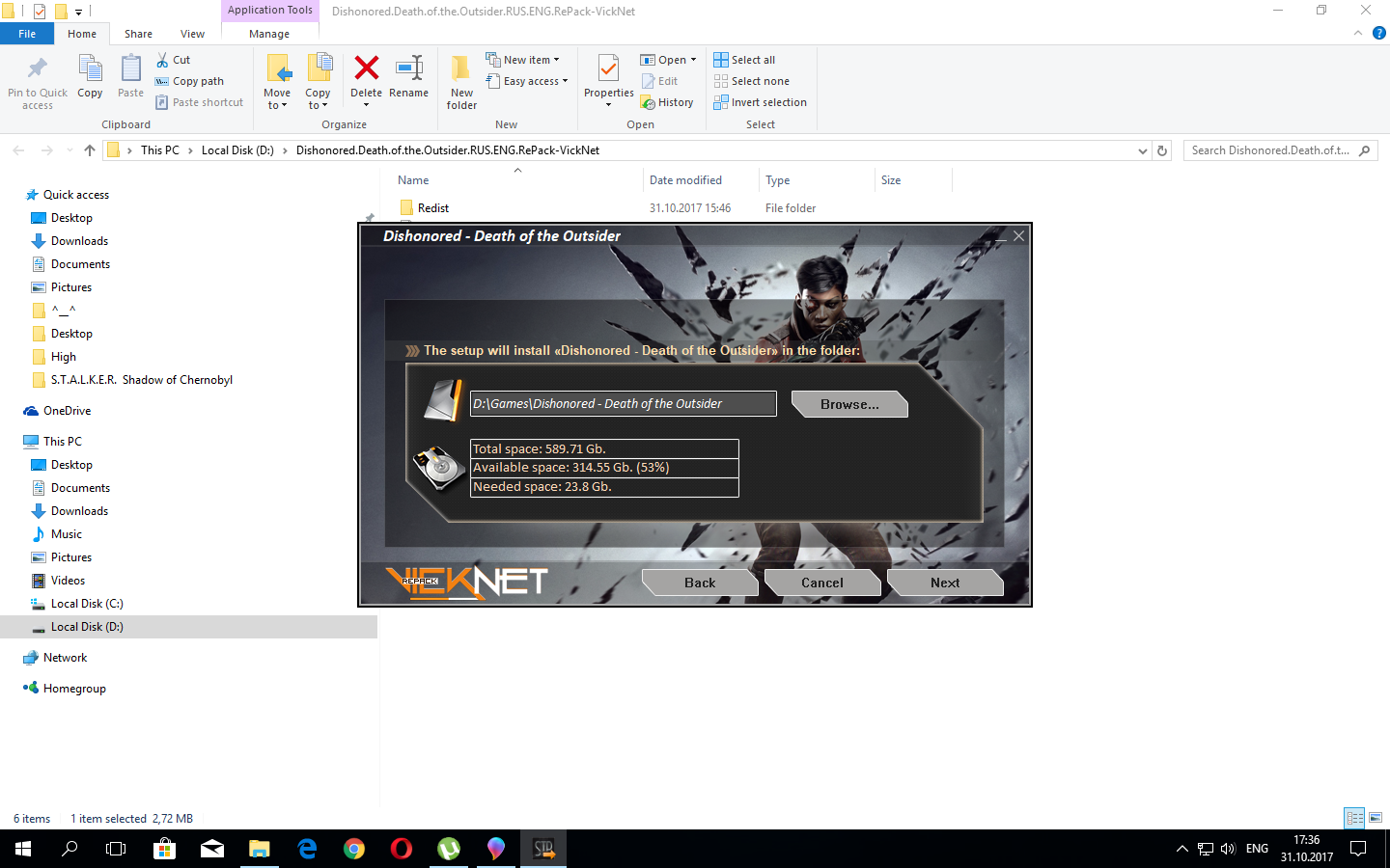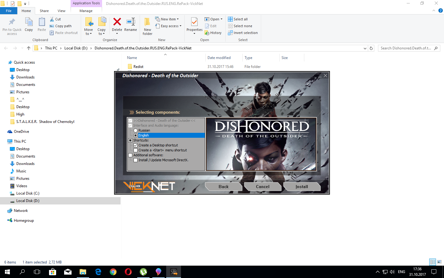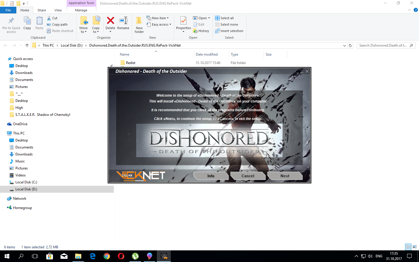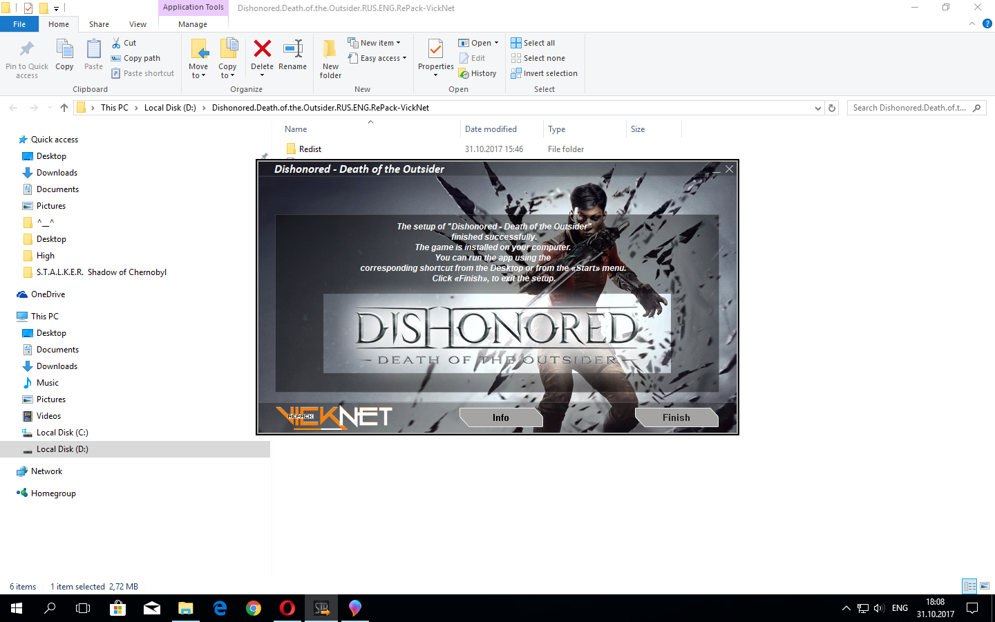 ინსტრუქცია:| გახსენით Dishonored.Death.of.the.Outsider.RUS.ENG.RePack-VickNet ფოლდერი